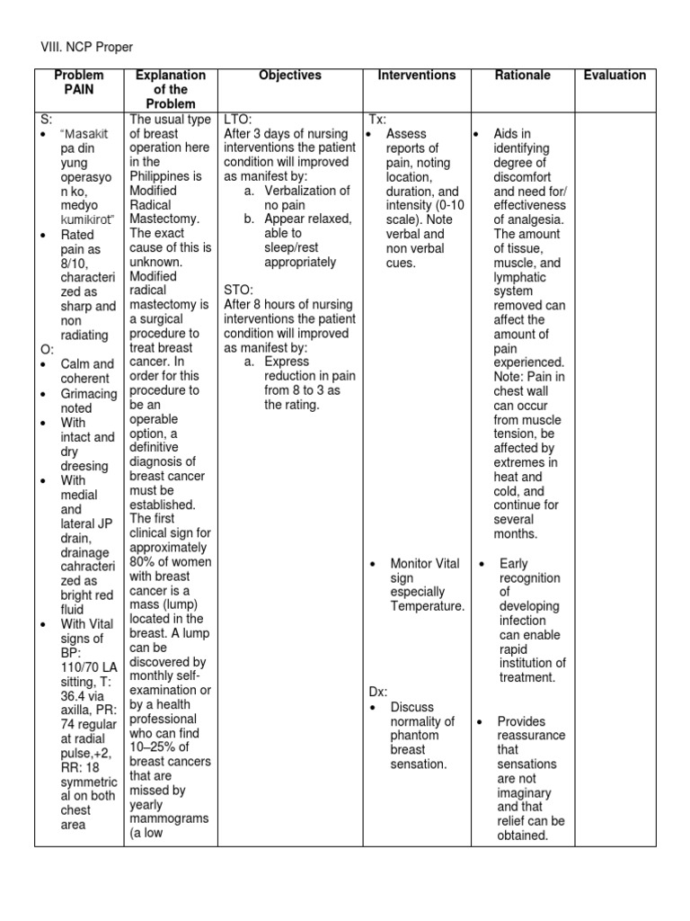 Nursing Care Plan for Breast Cancer NCP | Breast Cancer ... from imgv2-2-f.scribdassets.com Testicular cancer is the growth of malignant cells in the testes (testicles), which can nursing diagnosis: Cancer nursing care plan & management. You can even modify some things such as letting them come at their most it is a major field of study in social science and nursing. The treatment plan then changes from one that is meant to cure the cancer to one that gives there are different kinds of treatment for anxiety disorders. This month, and always, we are proud to honor and support you as you care for patients and demonstrate to the world. Potential for metastasis anticipatory grieving r/t loss and possible or impending death acute pain r/t tumour compression on. Nursing care plans nurse key. A nursing care plan for depression includes the assessment of the damage done by analyzing the behavioral patterns and coping abilities of the now let's talk about the nursing plan for anxiety related to surgery.